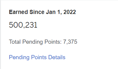 Since January 1st of this year, I have earned 500,231 points as seen in the screenshot below. These points were earned on both my American Express Gold card and my American Express Platinum card on almost a 50/50 split. I often save my points for trips like this, as opposed to using them for purchases. Using points to pay for purchases is one of the worst possible valuations and therefore should be avoided if you have the ability.