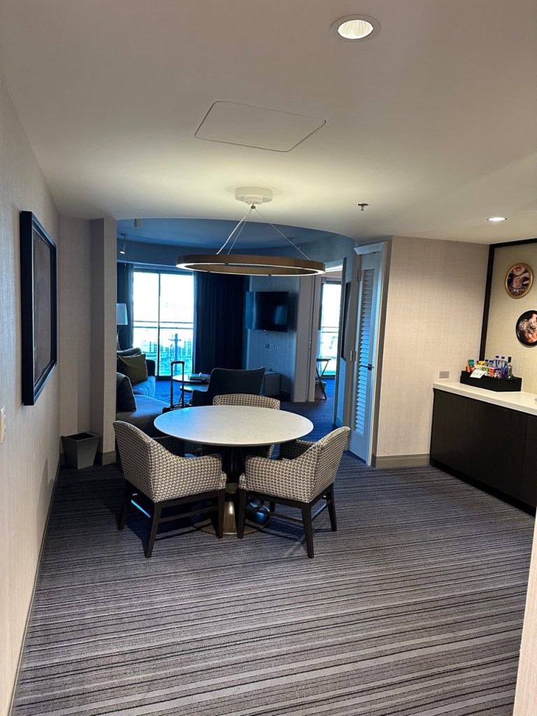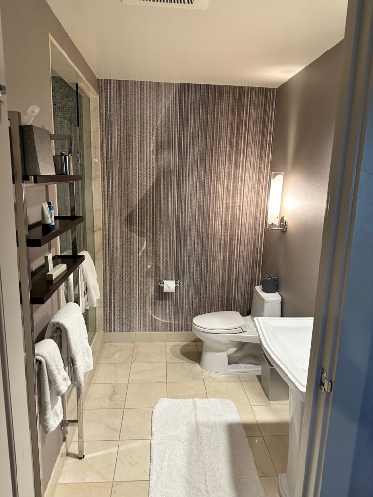 With the recommendation from the groom, we decided to stay at the Cosmopolitan, which certainly didn’t disappoint. The room had a great view overlooking the Bellagio fountains along with being clean, quiet, and centrally located to everything. We booked a Terrace Suite, Guest room, 1 King, Fountain view, which was either $900 a night + $45 a day resort fees or 240,000 points for the entire stay. I certainly didn’t feel like spending over $3100 and went the points option, earning me a 1.29 cents per point when Marriott points are traditionally valued at .07 cpp. We were upgraded to a central location room due to my Marriott Gold status via my American Express Platinum; which is an often underutilized perk of the card.